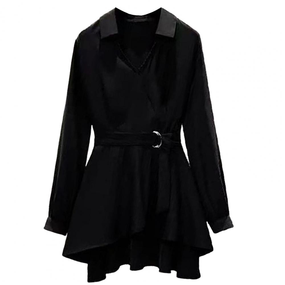 Lapel V Neck Long Sleeves Irregular Hem Plus Size Women Shirt Waist Tight Adjustable Belt Pullover Shirt Top Female Clothing